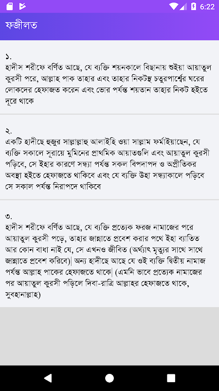 Sie müssen die MP3-Datei von Ayatul Kursi nicht von der Website herunterladen. Installieren Sie einfach die Audio-App von Ayatul Kursi und hören Sie sich die MP3-Datei von Ayatul Kursi an, um die Übersetzung von Englisch und Ayatul Kursi Bangla zu erhalten.