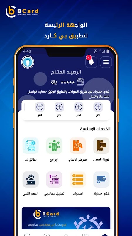 Zahlung des Restbetrags an alle Netzwerke jemenitischer Telekommunikationsunternehmen (Yemen Mobile). Befüllen und Aktivieren der 39- und 4G-Pakete. Bezahlen von Festnetz-Telefonrechnungen. Festnetz-Internet – Gebühren für alle Spiele. Gebühren für Social-Media-Programme.