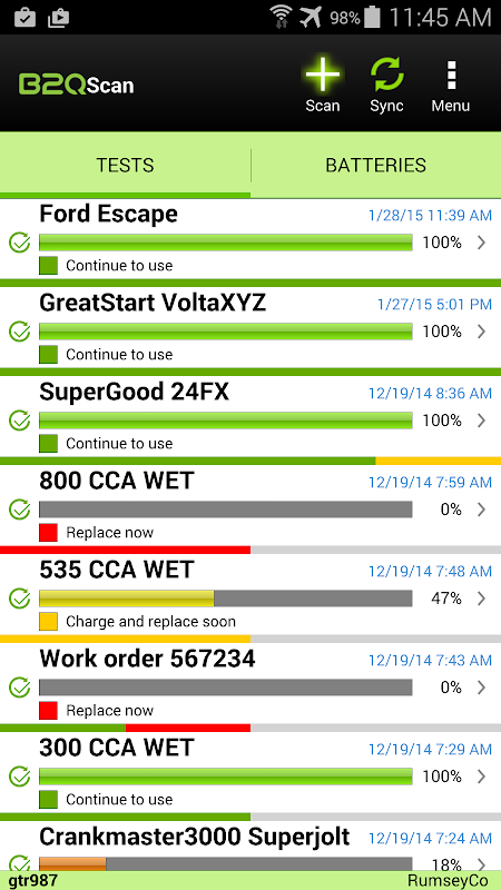 B2QScan Software ist eine Blei-Säure-Batterie Gesundheitsanalyse und Datenaustausch-Anwendung, die zusammen mit einem B1-Batterie-Tester arbeitet an Batterie-Service-Anbieter und Besitzer Batteriezustand ermitteln und zu verfolgen, die Gesundheit von 6 -12 V Blei-Säure-Batterien helfen (nass, überschwemmt, AGM).