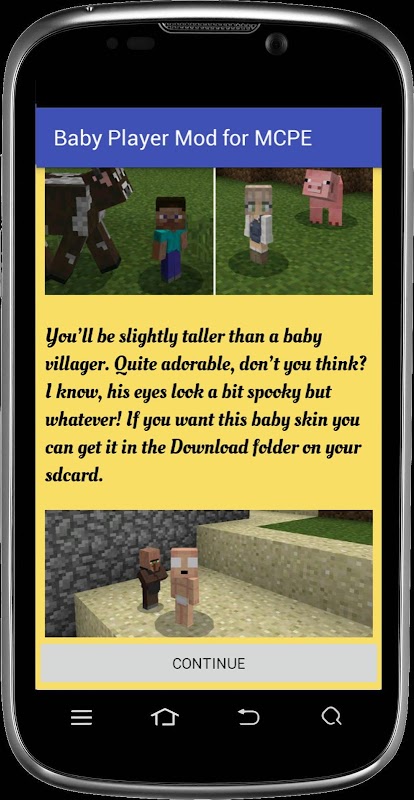 Dies ist die beste Anwendung des Baby-Player Mod für Minecraft Pocket Edition, enthält es eine Auto-Installer, so dass Sie die Mod mit nur 1-Klick installieren können. Ebenfalls enthalten ist eine Anleitung über das, was es bietet und wie es zu benutzen, so können Sie es konsultieren, wann immer Sie, falls Sie Zweifel haben.