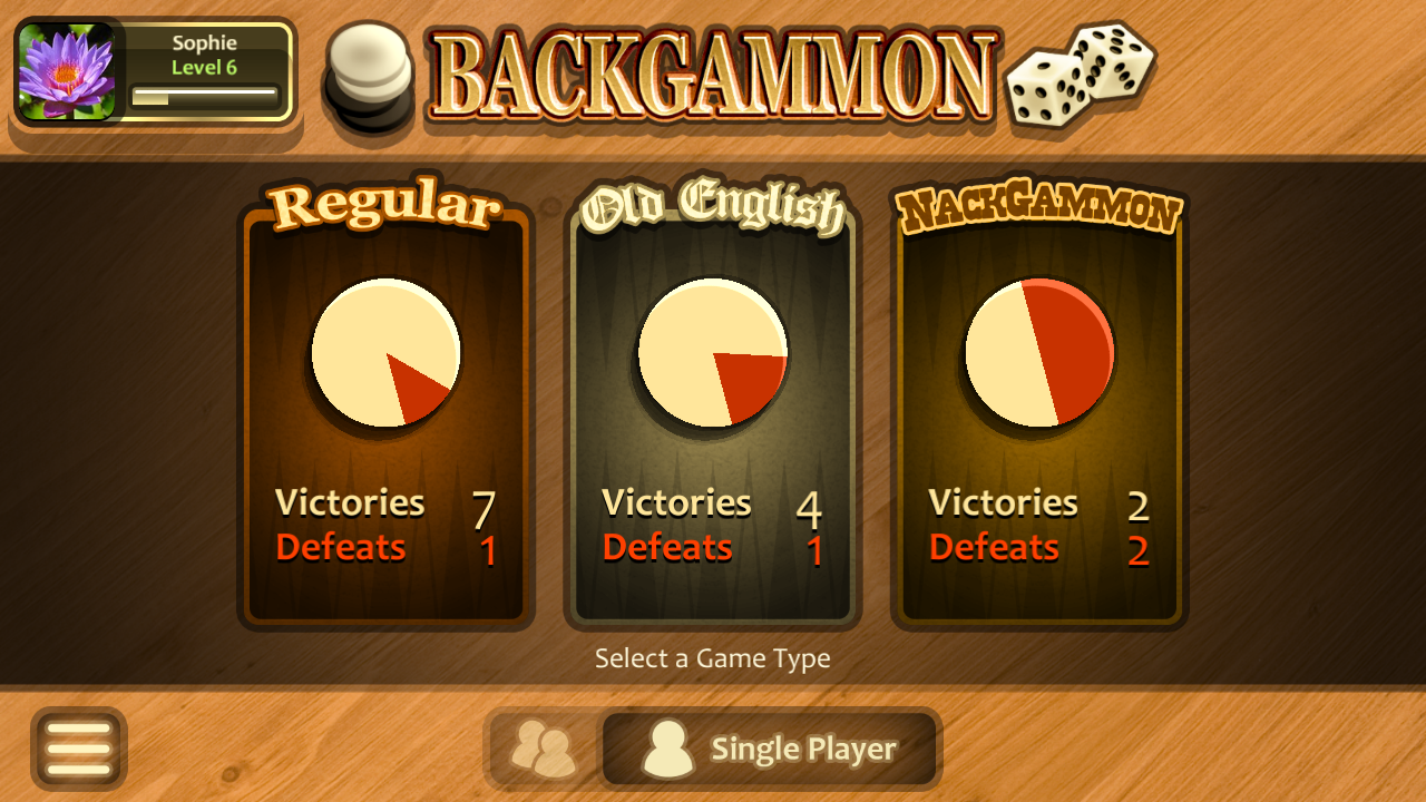 • Regular, "Old English" and Nackgammon game modes