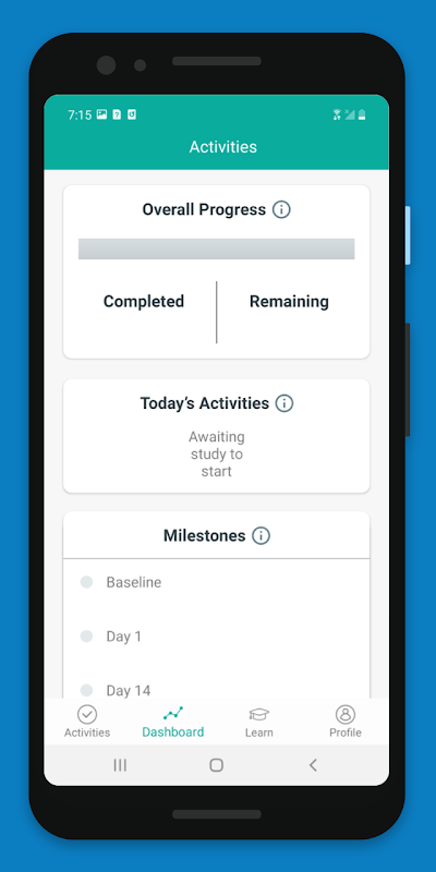 Dies ist eine App für Teilnehmer, die an der multizentrischen einarmigen Open-Label-Studie teilnehmen werden, um die Wirksamkeit eines transdermalen Kompressengeräts zu bewerten. Mit der App erledigen Sie Lernaktivitäten und haben Zugriff auf Lernressourcen. Zu den Aktivitäten gehören unter anderem Fragebögen zur Meldung von Stürzen und die Tragedauer von Prothesen.