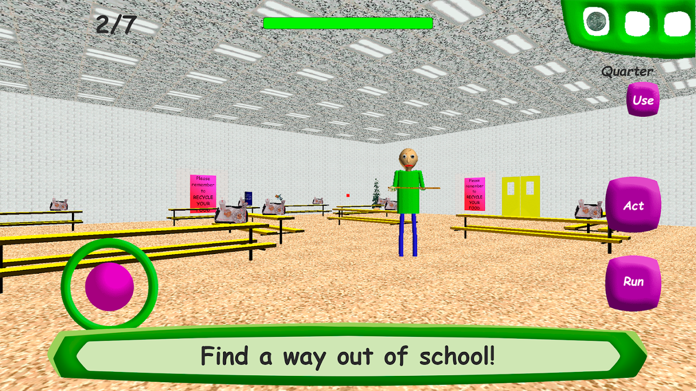 You need to collect all the laptops, solve the problems correctly and run away from school. For every wrong answer, an angry Baldi's can arrange a horror for you and if he finds you, then there will be no turning back. To survive you need to know all the basics of Baldi's.