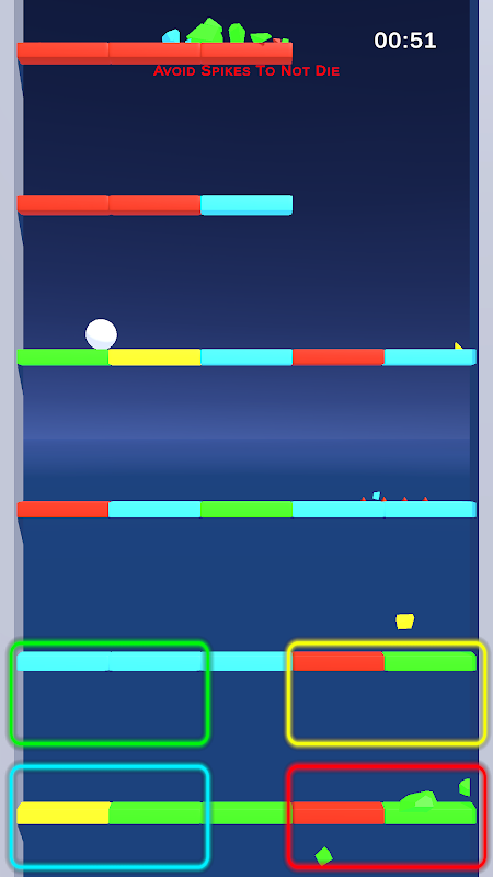 Tippe, um den Ball fallen zu lassen, und navigiere durch eine Reihe herausfordernder Hindernisse. Timing ist alles! Konzentriere dich und lass den Ball fallen, vermeide die falschen Farben und tödliche Lücken. Wie weit kannst du gehen?