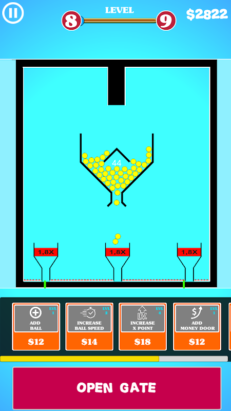 Sie geben die Bälle in einem inaktiven Eimer frei, indem Sie die Deckel des Eimers öffnen. Sie versuchen, diese Kugeln in die Eimer zu stecken, die sich unten bewegen. Wenn der Ball in den Eimer geht, beginnt der Kreislauf. Wenn Sie den Ball auf den Boden fallen lassen, wird der Ball zerstört. Wenn Ihre Ballzahl 0 erreicht, ist das Spiel vorbei. Erhöhe die Anzahl der Bälle, um aufzusteigen und Geld zu verdienen. Entwickle neue Fähigkeiten, wenn du Geld verdienst. Kaufen Sie mehr Bälle und beschleunigen Sie die Bälle.