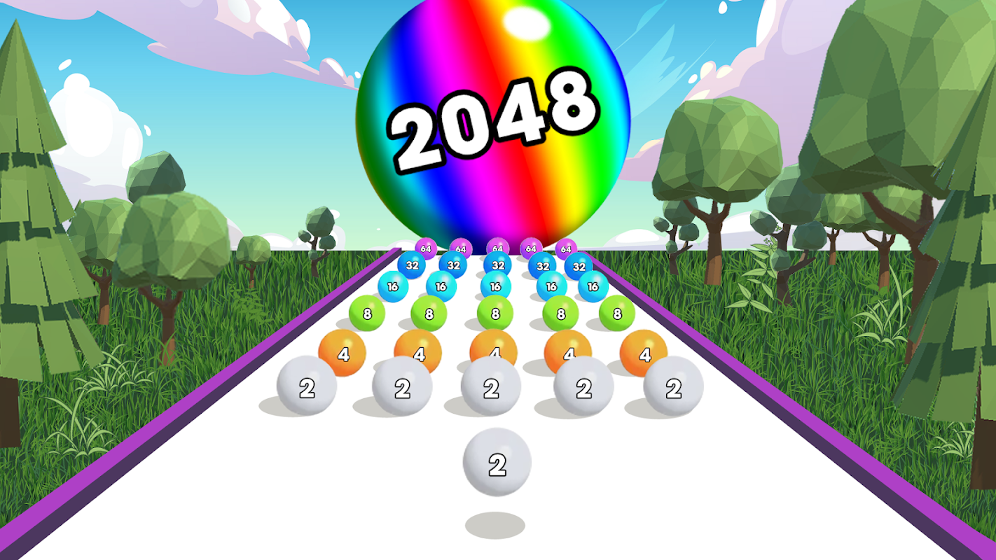 ⛳️Rules of 2048 ball game are so easy. Running from a small ball, with 2 number in 3D. During the ball run, merge with balls of the same color to reach 2048. All you need to do is avoid obstacles on the race and run faster to win Ball Run 2048 game.