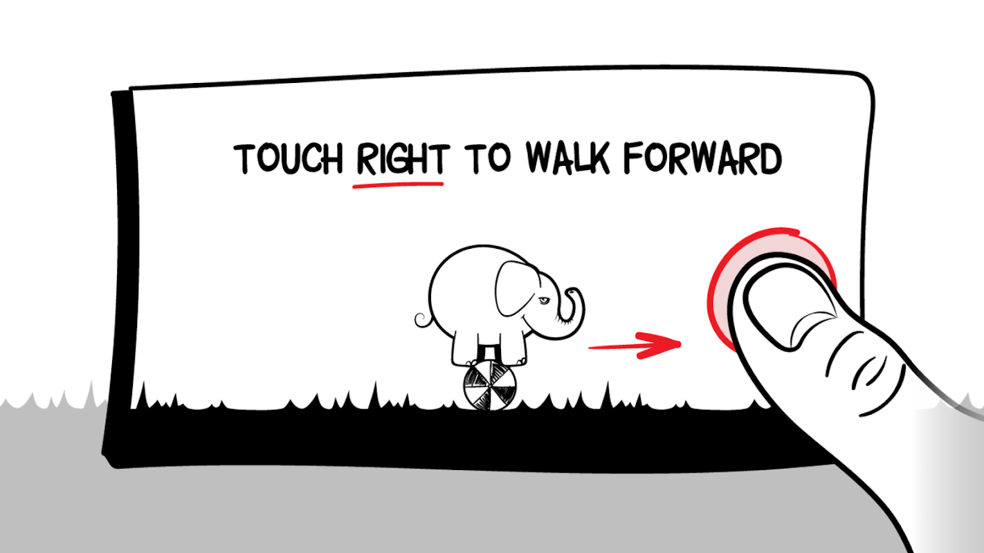 Lass den Elefanten auf dem Ball laufen und versuche, nicht zu fallen. Einfach, oder? Falsch!