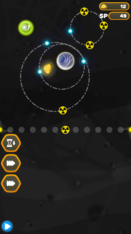 Verwenden Sie die Energieschleuder, um die Anziehungskreise zu treffen. Selbst wenn der Ball vom Bildschirm springt, wird er den aktuellen Fortschritt nicht beeinträchtigen, er wird nicht brechen, sondern zurückkommen und das Spiel wird fortgesetzt. Sie können nur verlieren, wenn Sie das Atom direkt treffen oder denselben Ball kreuzen, aber während des Spiels können Sie interessante Boni erhalten, zum Beispiel zusätzliche ein Leben. Wählen Sie die Art der Steuerung, die am besten zu Ihnen passt: Steuerung mit Ihrem Finger oder Steuerung mit Tasten mit Hauptaufnahmeanweisungen.
