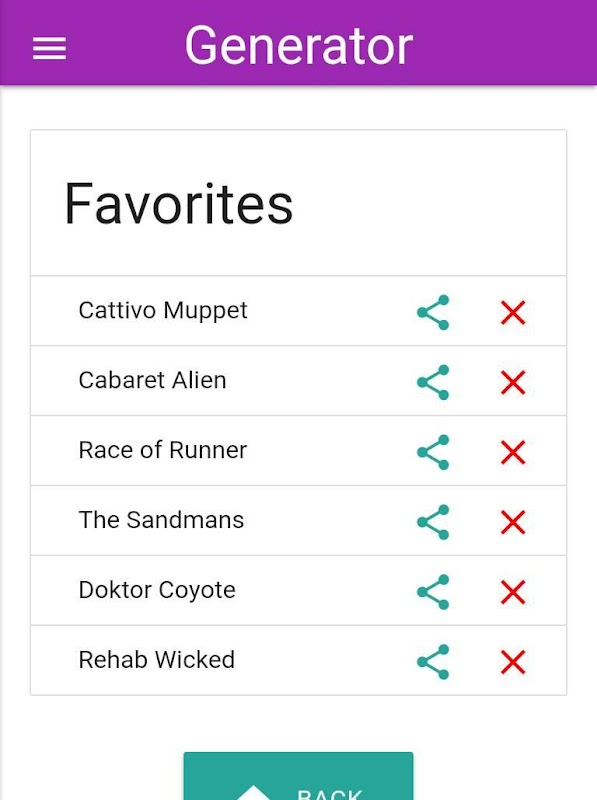 Now it's even better: if you liked the name but still want new suggestions, just save the name in your list of favorites! Save as many band names as you want, and then see what you like the most.