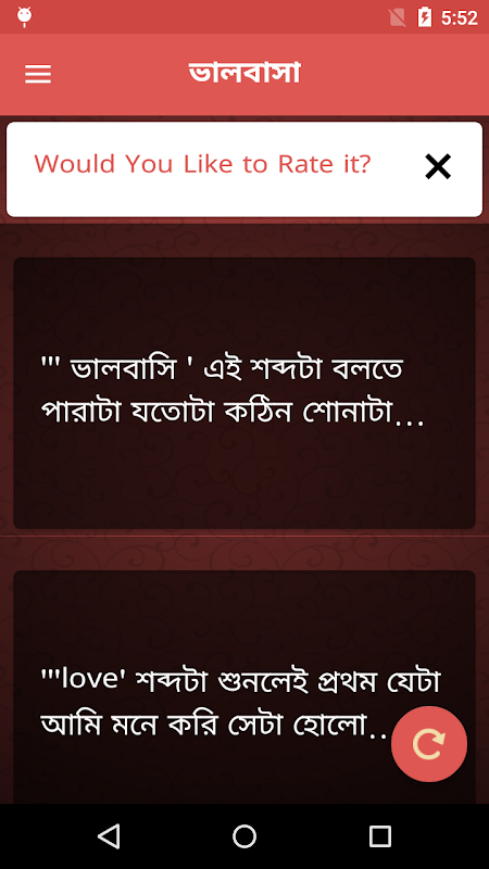 So here we have compiled some of the best,latest quotes for you. If you have social profile in social platforms then this app help you to sort out the status crisis. With Bangla Status app make your Facebook/ Whatsapp profile page & wall posts interesting every day with our latest and newest best status updates for all occasions. App contains huge variety of status that can help to users for describe their attitude on social media.