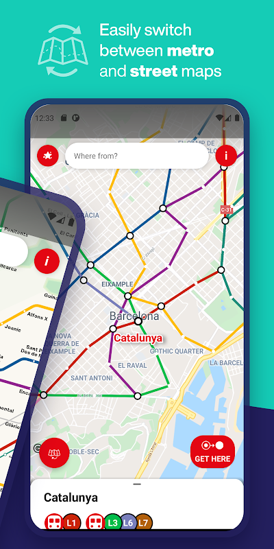 Barcelona Metro ist die Navigations-App, die das Reisen mit den öffentlichen Verkehrsmitteln der TMB Metro in Barcelona einfach macht 🚇