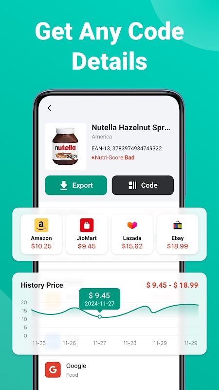 - Scannen Sie Produktbarcodes, um Echtzeitpreise von großen E-Commerce-Plattformen zu erhalten