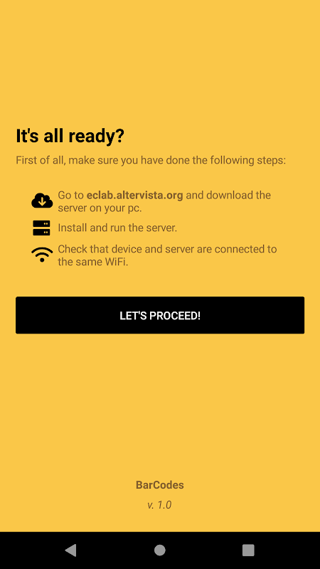1️⃣ Gehen Sie zu https://eclab.altervista.org und laden Sie BarCodes Server auf Ihren PC herunter
