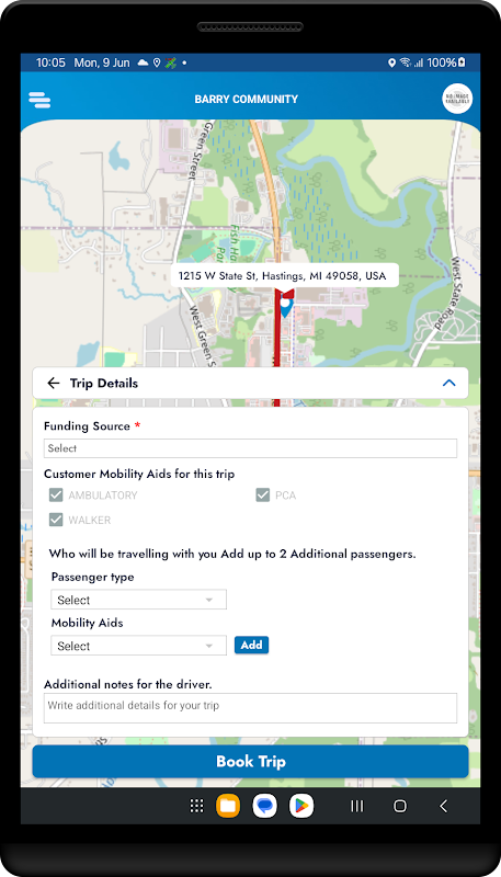 Die BARRY COUNTY App ist eine Transportplattform für Privatpersonen.