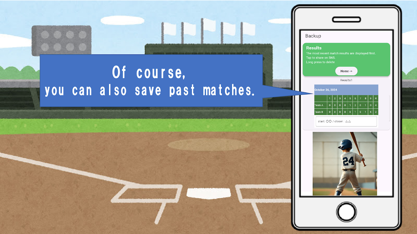 Einfach Baseball-Ergebnisse erfassen, bis zu 18 Innings speichern & teilen.