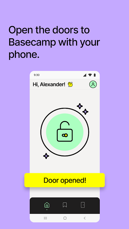 Sie müssen sich keine Gedanken über das Mitführen eines Schlüssels oder einer Karte machen – nur Ihr Mobiltelefon, das Sie ohne Zweifel immer dabei haben werden. Mit dem mobilen Basecamp-App-Schlüssel können Sie Ihre Tür öffnen, die Türschlossaktivität überwachen und Ihre Basecamp-Buchung unterwegs überprüfen.