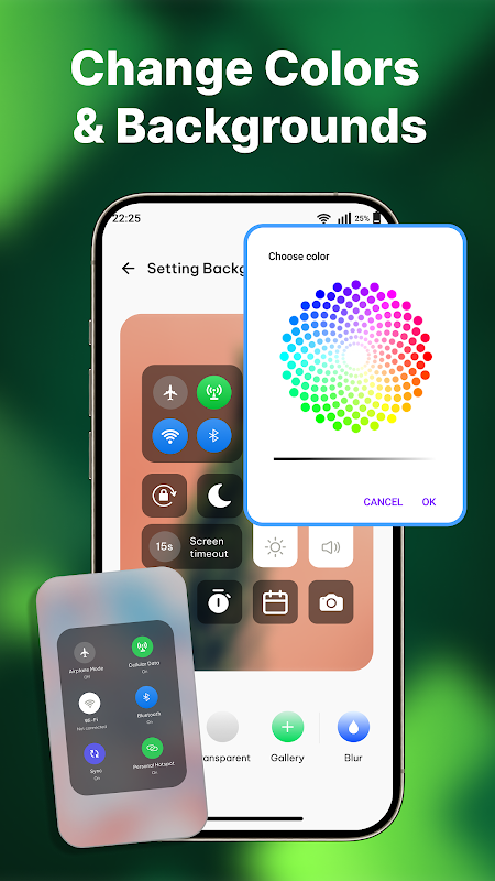 🌈 Wählen Sie den Hintergrund Ihres Kontrollzentrums aus und passen Sie ihn mit verschiedenen Farben oder Bildern aus Ihrer Galerie an.