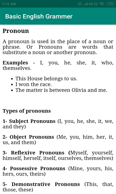 Diese App zum Erlernen der englischen Grammatik hilft Ihnen, Ihre Grammatikkenntnisse täglich zu verbessern. Diese Anwendung bringt Ihnen die englische Grammatik bei, so dass Sie Ihr Selbstvertrauen und Ihre Persönlichkeit vor die ganze Welt bringen können.