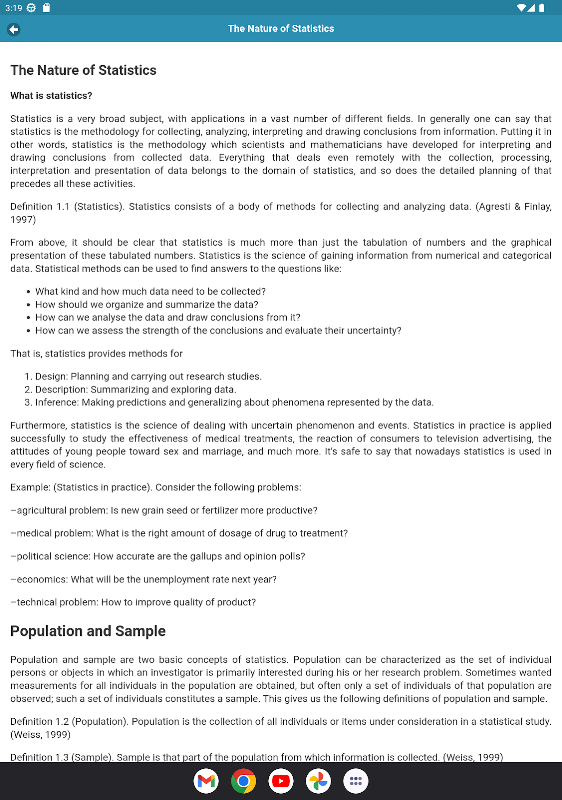 Statistik ist das Studium der Sammlung, Analyse, Interpretation, Präsentation und Organisation von Daten. Wenn Statistiken beispielsweise auf ein wissenschaftliches, industrielles oder soziales Problem angewendet werden, ist es üblich, mit einer statistischen Grundgesamtheit oder einem zu untersuchenden statistischen Modellprozess zu beginnen. Mit dieser App können Sie Statistiken lernen. Es wird Ihnen helfen, einen kurzen Blick auf die Vorlesungen zu werfen, bevor Sie die Prüfung ablegen. Grundlagen der Statistik für Studierende, die Statistik lernen möchten. Diese App enthält statistische Kurznotizen.