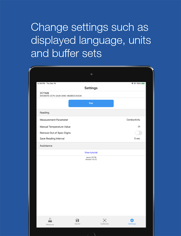 Unsere Benchtop-Serie der 5. Generation besteht aus Einzel- und Multiparametermodellen mit oder ohne Bluetooth-Konnektivität. Das 3177MB ist ein Multiparameter-Leitfähigkeits-/Salzgehalts-/TDS-/Temperatur-Bluetooth-Tischmessgerät, das mit einem iOS-Tablet gekoppelt werden kann, um die gleiche Benutzererfahrung wie die Lieblings-Apps der Benutzer zu ermöglichen und gleichzeitig grafische Darstellungen, geführte Kalibrierungsverfahren, GLP-konforme Datenspeicherung, Datenfreigabe, Cloud-Datenspeicherung und benutzerdefinierte Compliance-Richtlinien.