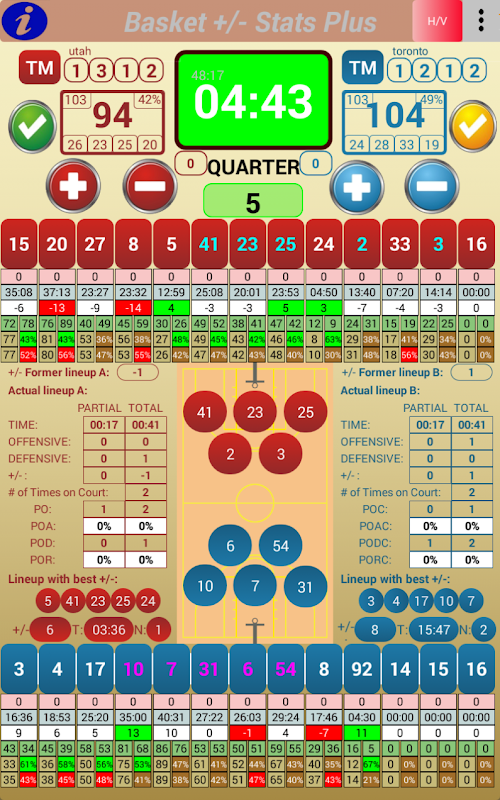 Basket Stats + / - plus % Korbbesitz, speziell an Trainer gerichtet