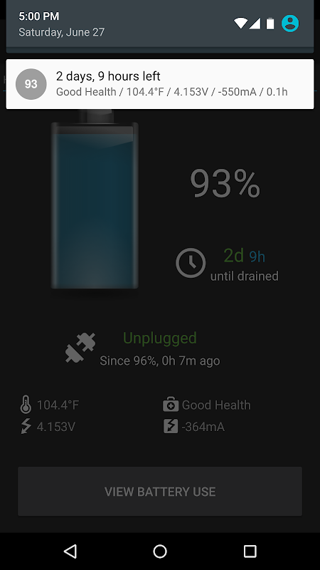BatteryBot Monitore und zeigt Ihren Ladezustand der Batterie (in Prozent) als ein Symbol in der Statusleiste, mit wie viel Zeit Ihnen noch bleibt, Temperatur, Gesundheit, Spannung und da eingesteckt Zeit / unplugged im Infobereich. Es hat jetzt auch einen 1x1-App-Widget. Die Pro-Version hat auch vom Benutzer konfigurierbare Alarme, Protokolle, mA aktuelle Informationen und ein großes (4x1) Widget.