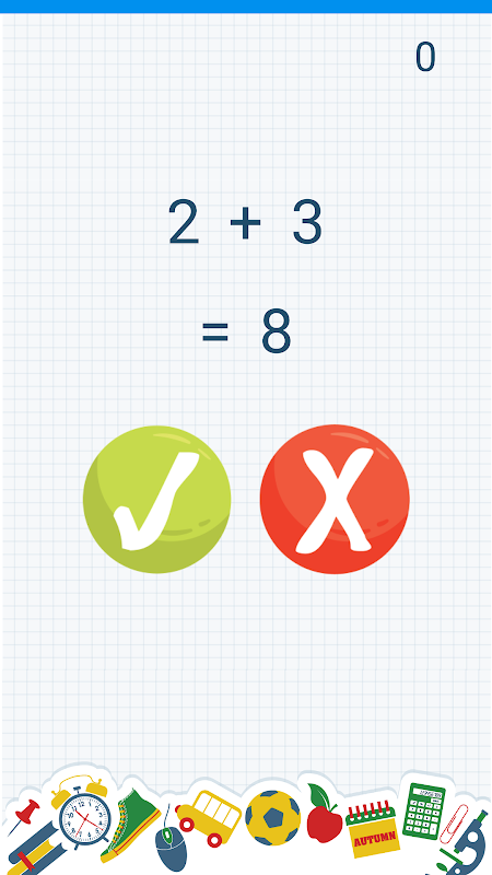 ✓ Equations will be shown on the screen and you have to tell if it is correct or not