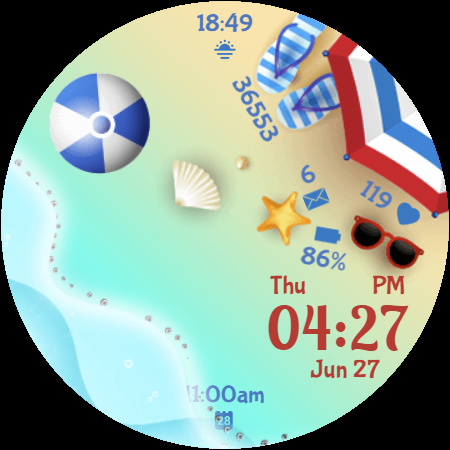 Entfliehen Sie dem Alltag und holen Sie sich die beruhigende Atmosphäre des Strandes direkt an Ihr Handgelenk. Ganz gleich, ob Sie einen geschäftigen Tag bewältigen oder sich am Abend entspannen, Beach Waves bietet eine ruhige Kulisse und wichtige Daten auf einen Blick.