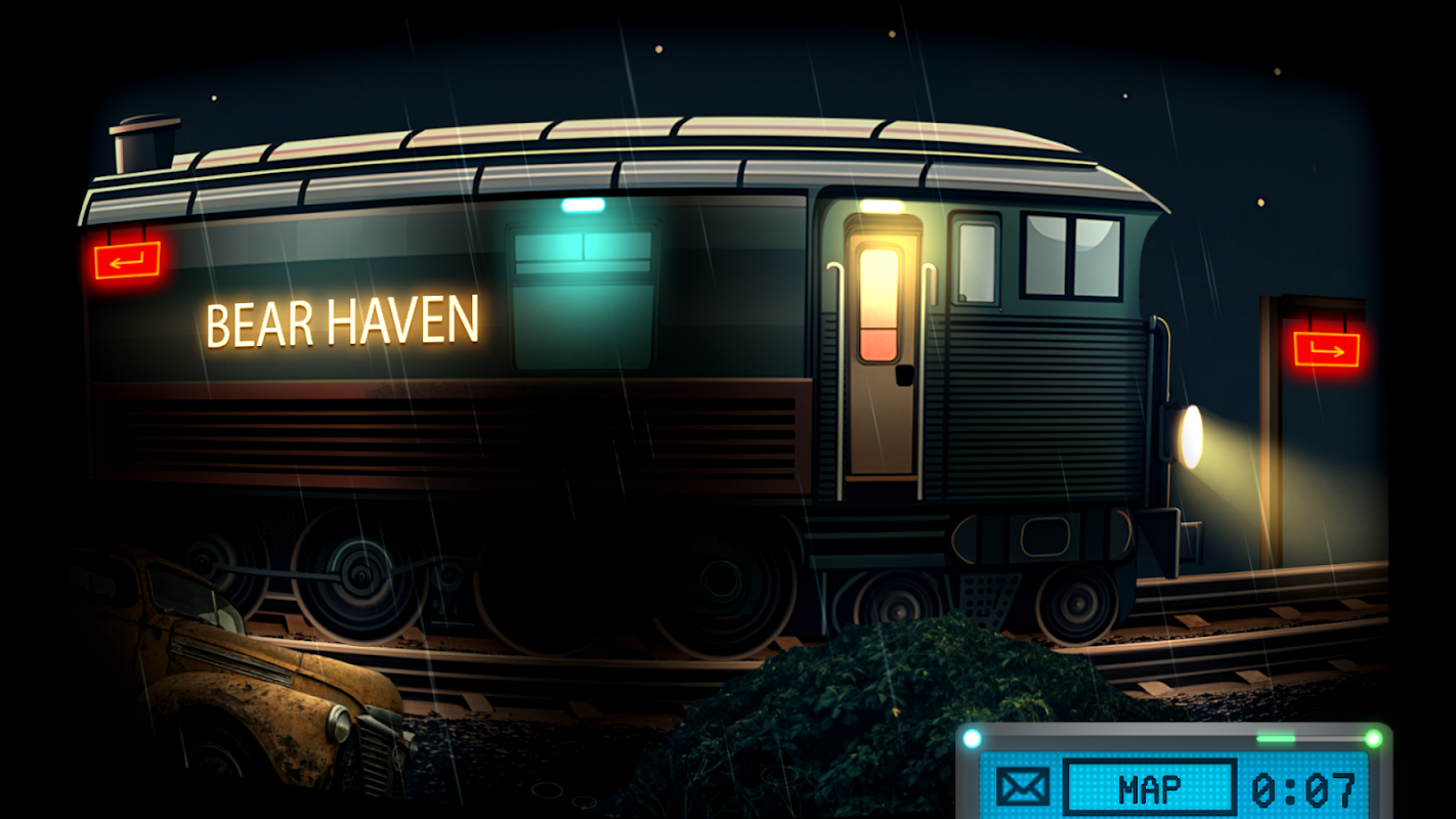 Nachdem du die Nächte im Wald überlebt und dem Bear Haven Motel entkommen bist, findest du dich nun in einem Zug wieder, der durch die Wildnis fährt. Der Zug kann nur tagsüber fahren, denn mit Einbruch der Nacht kommen die schrecklichen Gefahren. Wütende Bären zerstören die elektrischen Systeme und lassen dich in völliger Dunkelheit zurück.