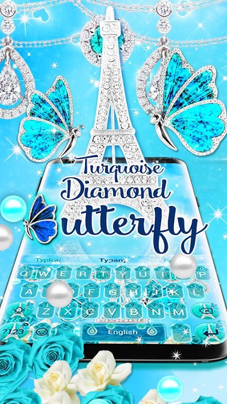 Diese wunderschöne Tastatur ist für Leute gedacht, die Beautiful 💠Diamond 🦋Butterfly mögen. Die schönen 💎diamond Eiffel 🗼Towers sitzt in der Mitte von hängenden teal 💎diamond Halsketten umgeben.Beautiful Diamond Butterfly ist ein Tastatur-Thema mit schönen Diamond Butterfly Wallpaper und schönen Diamond Butterfly Schlüssel Hintergrund. Der Türkis-Diamant-Schmetterling mit vorzüglichen Diamant liebenden Halsketten, eleganten 🌹roses, ⚪️pearl u. Niedlichem 💙blue- 💚green 💎 💎diamond lässt Ihren Telefonschirm lebhafter und ✨shining schauen.
