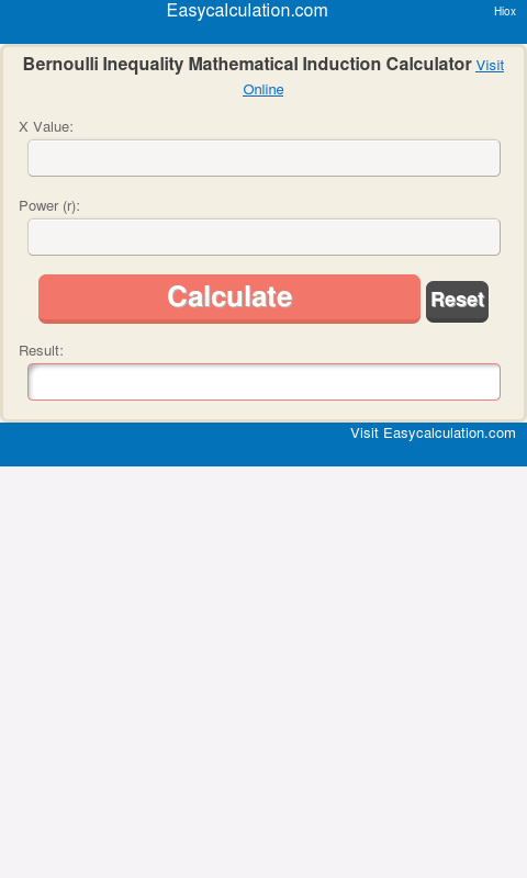 Bernoulli Inequality Mathematical Induction Calculator is used to prove the inequality of any function.