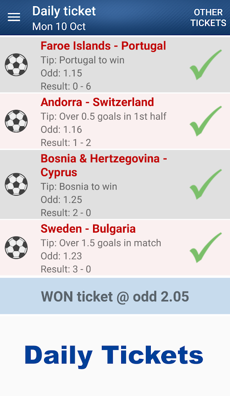 Die Anwendung hat ein großartiges Design und ein interaktives Menü (Optionen wie Anzeigenentfernung, kostenlose und VIP-Wetttipps).
