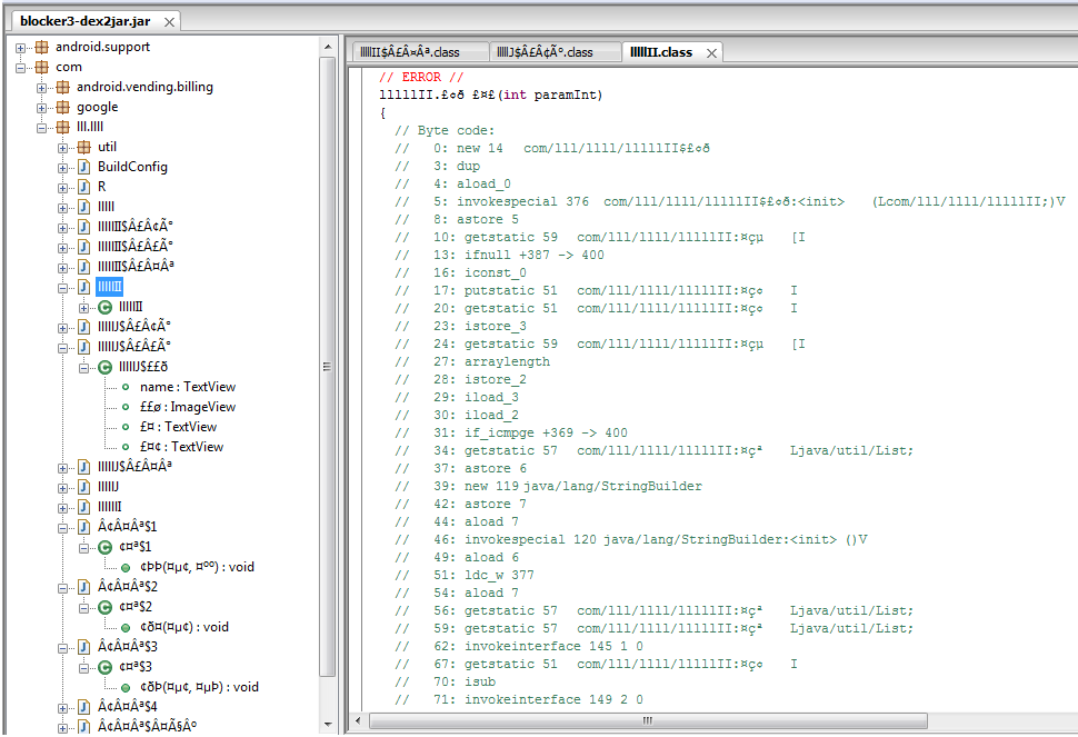 We have tested this solution with a lot of Java decompiler tools, and these tools got a lot of errors when trying to reverse java source from the protected App.