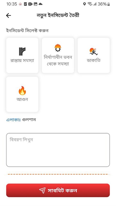Melden Sie Vorfälle und Notfälle und bleiben Sie mit der Bhalobashar Gulshan-App auf dem Laufenden.