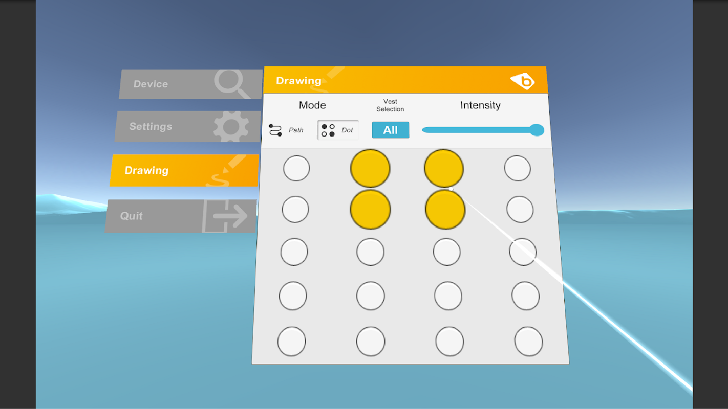 Draw on the UI to send haptic feedback to the devices using Path Mode, or control the individual motors using Dot Mode.