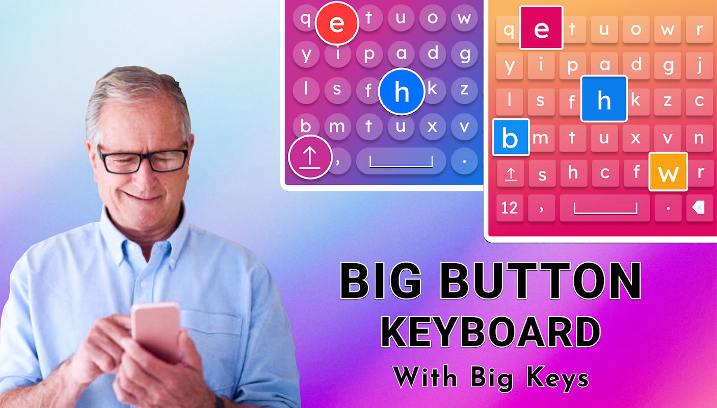 Tastatur mit großen Tasten: Die Swipe-Tastatur mit großen Tasten ist eine einfache Eingabetastatur mit großen Tasten, indem Sie diese verwenden Einfaches Eingeben von Text mit großen Schaltflächen und großen Tasten. Auf dieser großen Tastatur können Benutzer mit großen Tasten einfach tippen und ihre Worte auch sprechen Spracheingabe größere Tastatur. Tastatur mit großen Tasten: Die größere Tastatur mit großen Tasten ist voller Spaß und Freude mit mehreren neuen Themen, mit denen Sie wechseln können das Thema der Tastatur mit großen Tasten. Diese einfache Tastatur mit Swipe-Keyboard-Funktionalität und Gestentastatur ist perfekt für ältere Menschen geeignet Reibungsloses und schnelles Tippen, da dies eine 5-reihige Tastatur mit Google Type ist.