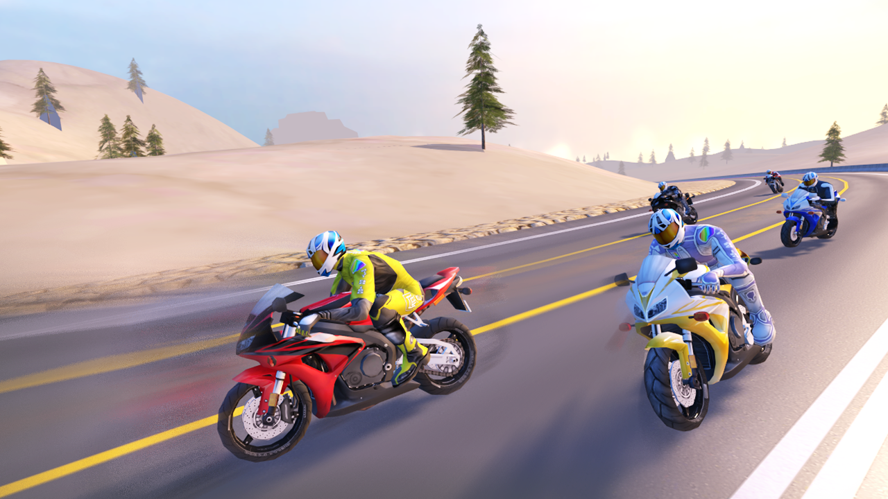 Fahren Sie mit Ihrem Motorrad auf den endlosen Straßen, die den Verkehr überholen. Sie können Ihre neuen Lieblingsmotorräder aufrüsten und kaufen, um die Missionen abzuschließen. Je schneller Sie fahren, desto mehr Punkte erhalten Sie.