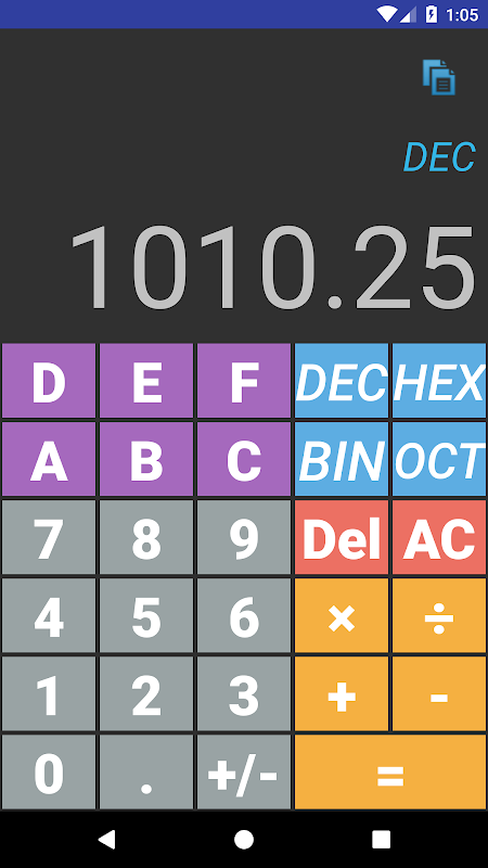 Diese App hilft dem Anwender bei der Durchführung der Berechnung / Umwandlung, die verschiedene Anzahl Bases (Binär-, Dezimal, Hexadezimal). Es hat eine einfache Benutzeroberfläche und es ist geeignet für Engineering / Computing Personal.