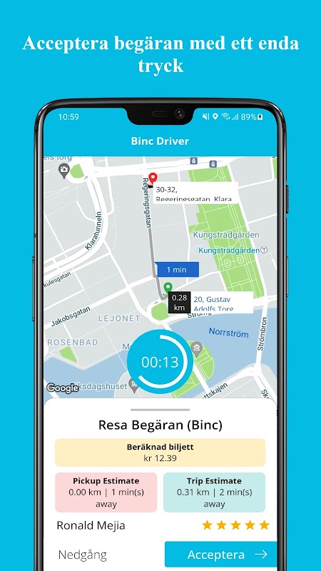 Sofortige Fahrtbenachrichtigungen: Erhalten Sie Fahranfragen in der Nähe und akzeptieren Sie diese mit einem Fingertipp.