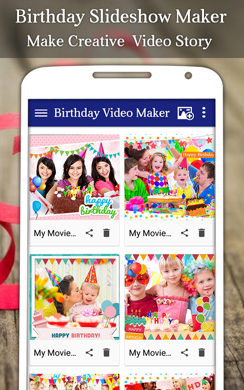 Birthday Slideshow With Music App You can create videos using photos, add music to video, edit photos used for the video, add Birthday frames to video, set speed of frame rate to your photo video. You can make video with pictures and music from gallery. Never miss special moments and clicks of Birthday celebration and create video easily with few steps with help of Birthday video maker.