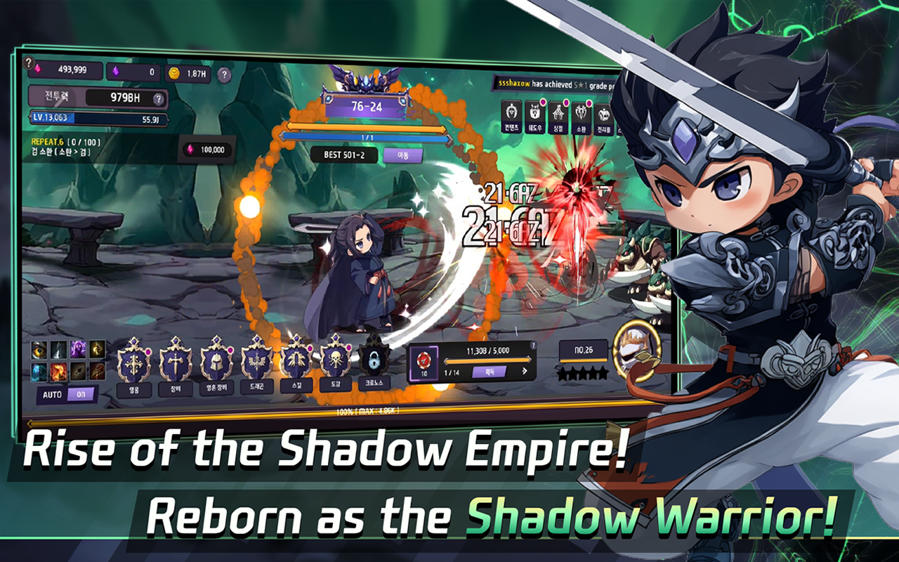 Nimm die Macht der Dunkelheit auf und werde stärker, auch wenn du nicht da bist. Schattenenergie füllt sich automatisch und schaltet epische Fähigkeiten und explosiven Schaden frei!