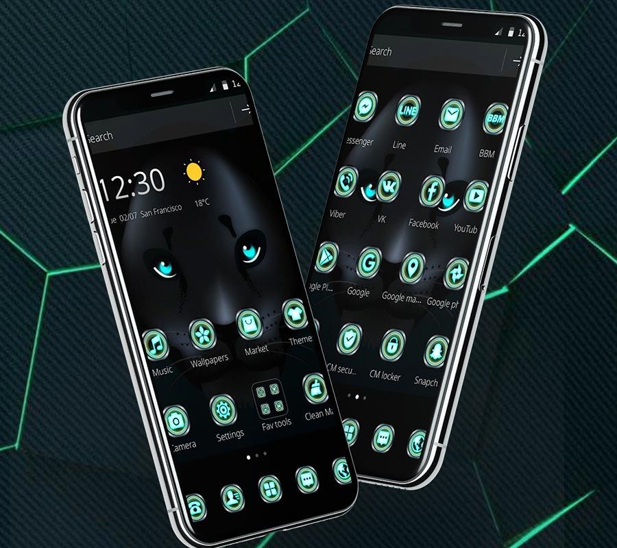 Black Tech Leopard theme gives you Black Tech Leopard live wallpapers with dark night background and emerald Black Tech Leopard home screen. Black Tech Leopard provides dark night emerald icon pack .This beautiful Black Tech Leopard theme is specially made for guys who love dark night leopard and green neon tech decoration. Black Tech Leopard theme is a perfect theme with HD live wallpaper and brings you an emerald tech experience. Make your device emerald and green neon with customized app icon pack, organized folders, sliding screen effects, HD wallpapers and widgets. You will love this green neon Black Tech Leopard theme to customize your android home screen. No matter you like dark night leopard HD live wallpaper or green neon mobile phone, you will love this dark night theme with emerald decoration. Beautify your android home screen with this Black Tech Leopard theme now! Black Tech Leopard theme is available on most android phones.