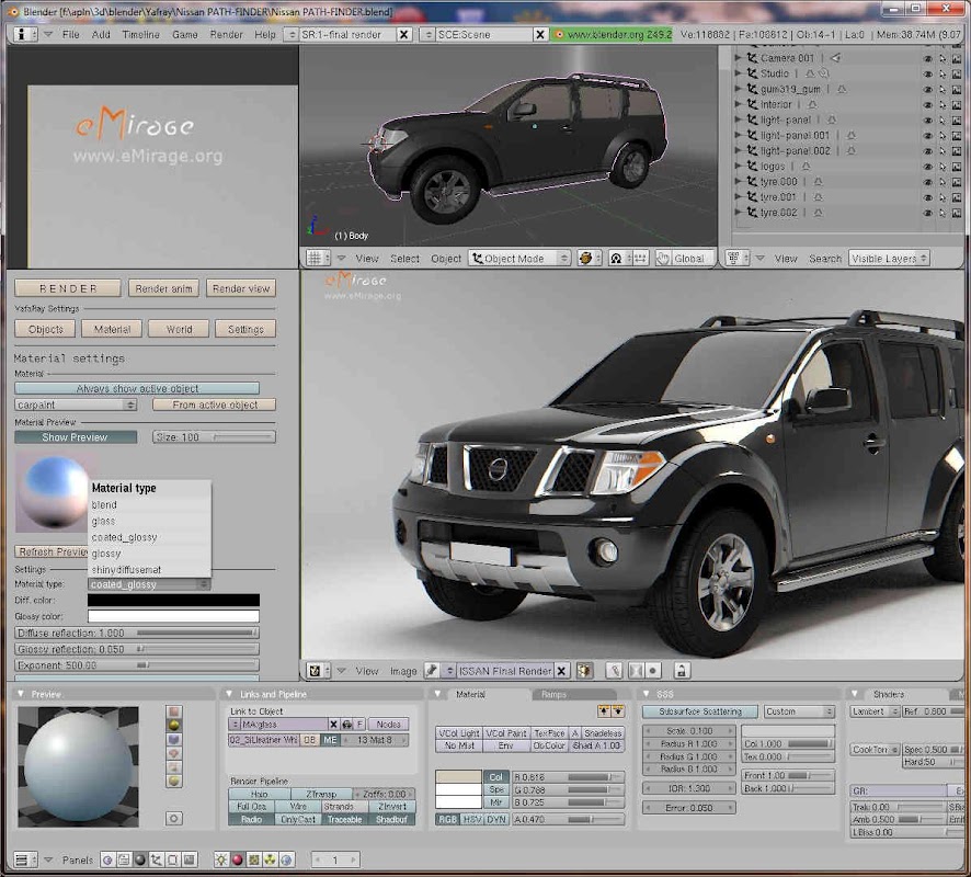 Learn Blender3D is a professional free and open-source 3D computer graphics software product used for creating animated films, visual effects, art, 3D printed models, interactive 3D applications and video games. Blender's features include 3D modeling, UV unwrapping, texturing, raster graphics editing, rigging and skinning, fluid and smoke simulation, particle simulation, soft body simulation, sculpting, animating, match moving, camera tracking, rendering, video editing and compositing. It further features an integrated game engine.Integration with a number of external render engines through plugins.