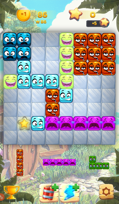 - shapes onto the grid in order to create vertical or horizontal lines to blast and get points and starts.