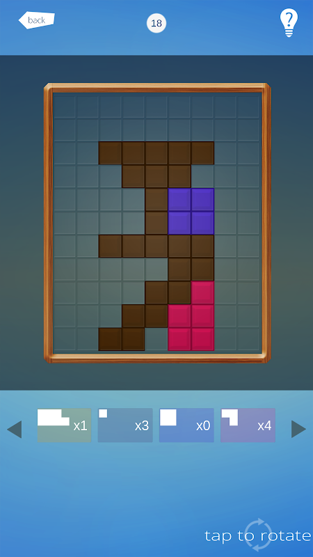 Auf jedem Level musst du den ganzen Spieltisch mit Steinen ausfüllen. Manche Stellen sind von Anfang an mit Steinen ausgefüllt, die nicht bewegt werden können. Die restlichen Formen können gezogen, gedreht und an beliebigen Stellen platziert werden, um alle freien Stellen auszufüllen. Baue deine Lösung wie ein Profi.