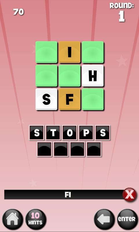 Powered by thousands of words in the English language. There are 2 to 3 words hidden within each puzzle. The boxes below the letters indicate the length of the words hidden within the letter block. Tap the letter tiles to try and decipher the words. Tap the clear(x) button or swipe in any direction to clear the word, or tap the back arrow button, or the letter tile itself, to delete a single letter.