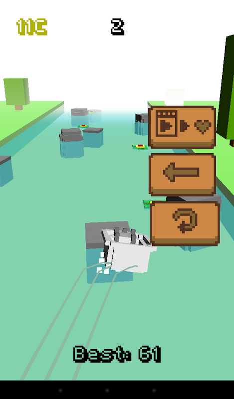 Collect powerups along the river. But be careful, not all are in your favour... Will you get a wrecking ball that clears your path, or waves that throw you off course?
