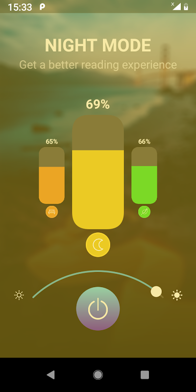 Night mode adjusts the colors of your display to the warmer end of the spectrum—making the display easier on your eyes. Also here are even more options - selecting the filter color according to color temperature, shortcuts on the home screen, a notification widget and an activation time schedule.