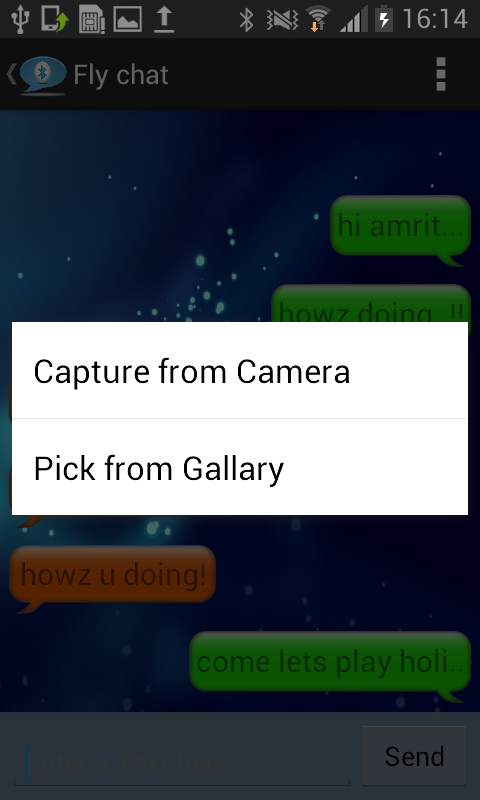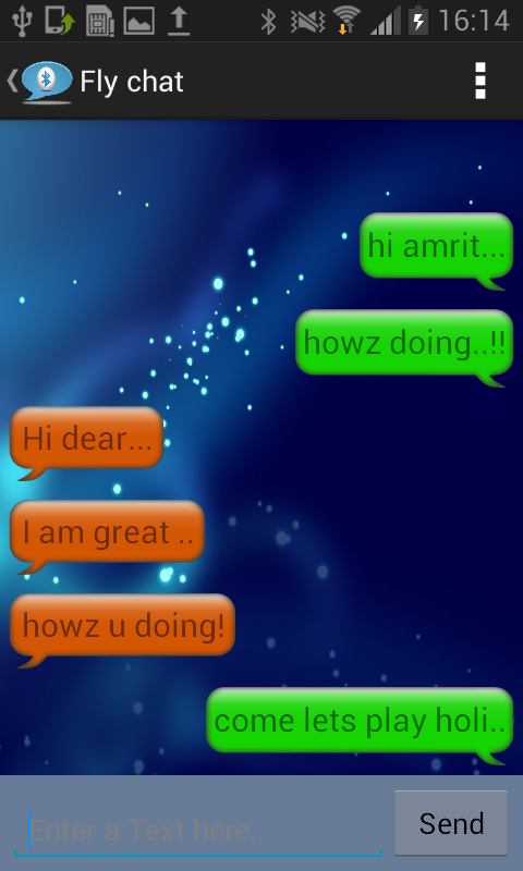 Fly Chat application provides you the flexibility to chat with your Nearby Friends along with trasfer of Media files and that too, without any Internet connection usage costs !!