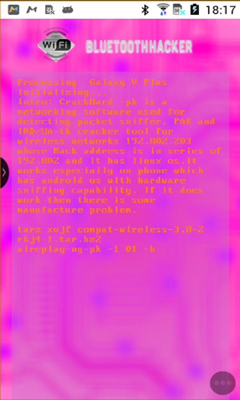 Eigentlich Bluetooth-Hacker ist Streich-Anwendung, die den Eindruck erweckt, dass Sie andere Menschen Telefon mit Bluetooth hacken können. Es schadet niemandem Handy. Es wurde entwickelt, um mit deinen Freunden Streiche zu spielen.